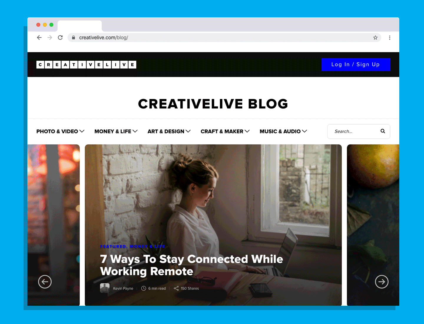 CreativeLive is a web platform providing online classes in photography, design, craft, business, and entrepreneurship. The majority of native traffic comes via blog articles, so a layout and user interface upgrade to the blog was needed to improve reader experience and increase flow between the content and web product offerings.